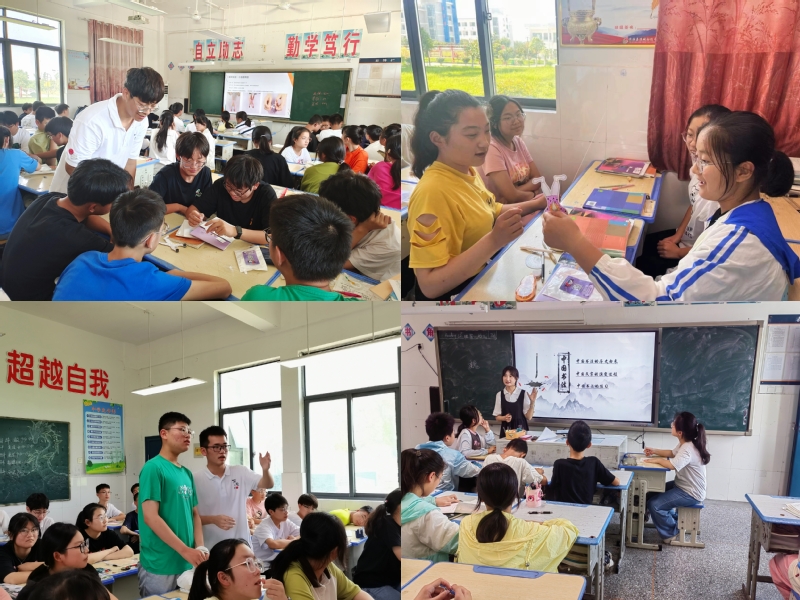 在父母缺位、师资不足、长辈无力辅导的情况下,小老师们激发着孩子们的学习兴趣,引导孩子们用心感受这个世界的广博与精彩。同时,他们也从孩子们身上学会感恩、尊重以及那份单纯的快乐……胜英在日记中这样写道:“支教是一场双向奔赴的浪漫之旅,过程中充满新奇和未知,会好奇自己有一群怎样的学生,也会担心自己无法上好一堂课,但在真正接触学生时,紧张也会随着学生的笑脸而缓解消失……”“我们都是来自农村的孩子,进入大学后成为受助的陶学子,时刻感佩于心。港城初级中学是我的初中母校,伯藜暑期支教来得太及时,我迫不及待想用学到的新知识陪伴母校的弟弟妹妹们渡过一个有意义的夏日”家在支教地的霜林谈到支教初衷如是说道。