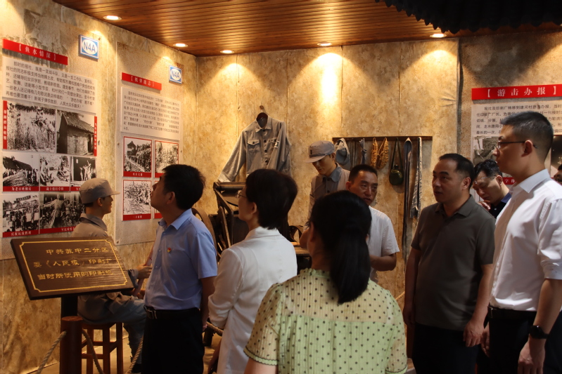 在中共苏中二分区《人民报》印刷厂旧址,大家驻足观看了陈列馆中间摆放的一台旧式印刷机。这是盐阜军民在国民党反动派“清剿”下,成功掩护红色报纸印刷发行,鼓舞苏皖边区军民革命斗志的历史见证。新四军自上而下严守“三大纪律、十项注意”,巩固了军爱民、民拥军、军民团结的良好局面,展现了战火纷飞年代游击办报中的军民鱼水情。