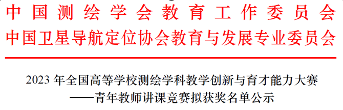 2023年7月30-31日,由中国测绘学会教育工作委员会、中国卫星导航定位协会教育与发展专业委员会主办的2023年全国高等学校测绘学科教学创新与育才能力大赛——青年教师讲课竞赛决赛在湖南科技大学举办。我校城市与规划学院3位教师分别获得两个一等奖、一个二等奖的好成绩。