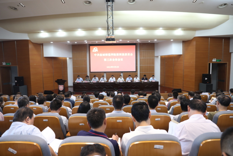 9月2日,中国共产党盐城师范学院四届三次全委会在新长校区图书馆学术报告厅召开,全体校领导,党委委员、纪委委员,全体中层干部以及部分党代会代表出席会议。学校党委书记戴斌荣代表党委常委会作工作报告,党委副书记、校长张宏如部署2023年秋学期学校主要工作。
