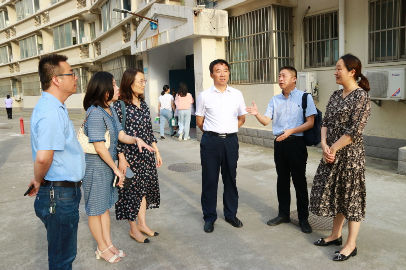 戴斌荣一行来到通榆校区南苑学生宿舍、北苑学生宿舍等处,查看了学生宿舍维修改造、住宿安排、物业服务等方面的情况。戴斌荣了解了新生基本数据、学生宿舍的床位数以及设施配备情况、周边环境安全等有关情况,并对人行道畅通、车辆停放等问题进行现场研究,提出解决方案。检查指导过程中,戴斌荣和法政学院、历史与公共管理学院相关负责人进行交流,强调新生宿舍安排要充分考虑学生居住实际,营造整洁有序、安全温馨的生活环境,戴斌荣叮嘱相关部门要积极统筹谋划,以饱满的热情和充分的准备迎接新同学的到来。