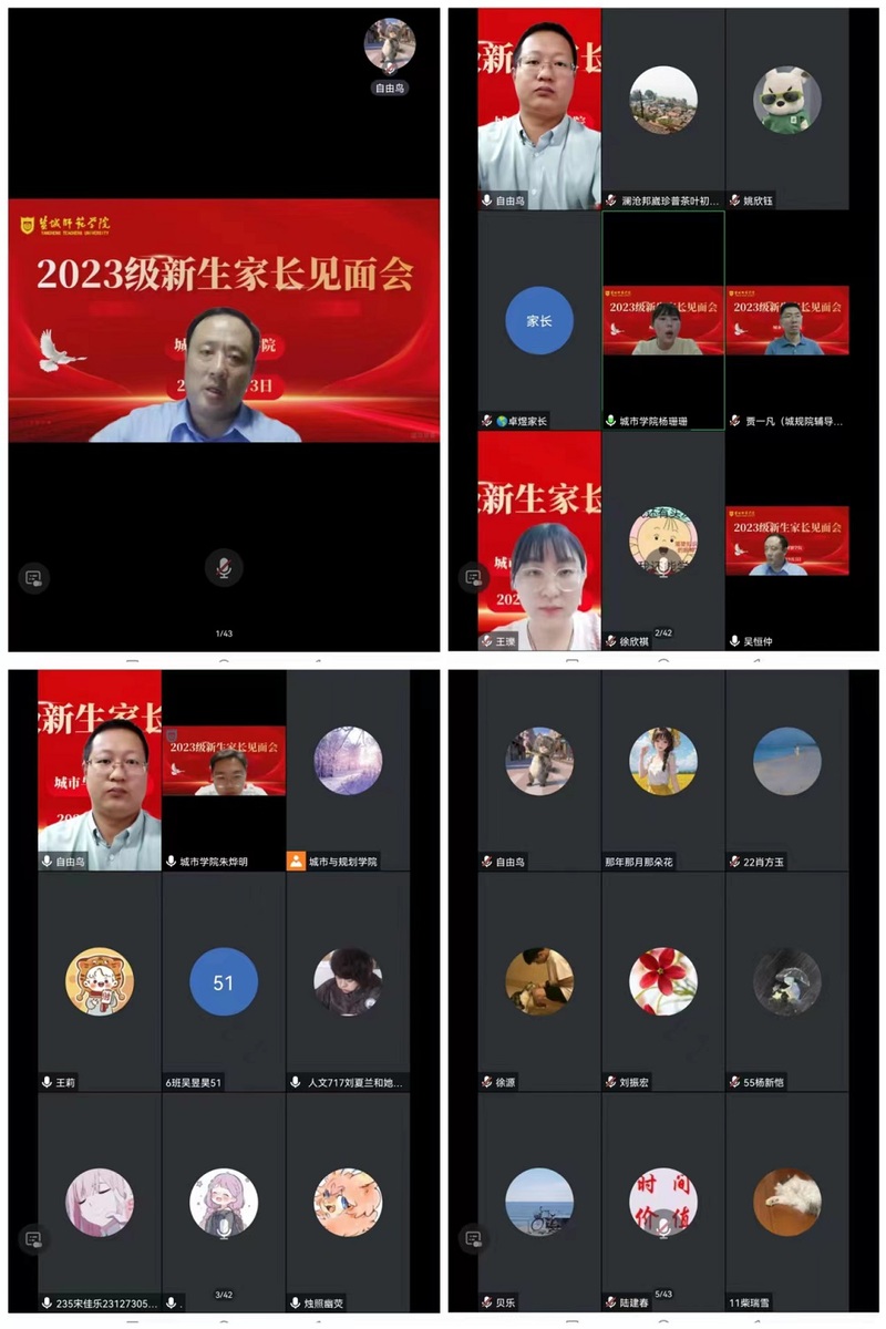 为帮助新生和家长更好地了解大学生活,加强家校沟通,形成育人合力。城市与规划学院于9月3日晚利用腾讯会议召开了2023级线上新生家长会,学院党委副书记吴恒仲、全体辅导员及2023级新生家长参加会议。