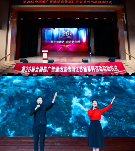 9月12日上午,第26届推广普通话宣传周江苏省系列活动开幕式在盐城机电高等职业技术学校盛大举行。江苏省委宣传部、省委网信办、省教育厅、省文旅厅、省乡村振兴局、省总工会、团省委、盐城市有关领导出席开幕式。