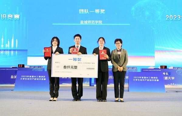 9月24日下午,首届长三角地区大学生知识产权知识竞赛决赛在苏州开幕。来自上海、江苏、浙江、安徽的12支高校代表队齐聚苏州,经过六轮激烈比拼,由我校法政学院李叶青老师带队,王薪佑、王英、朱紫睿同学组成的盐城师范学院代表队获得团队一等奖,上海交通大学代表队、中国矿业大学代表队获得团队二等奖,浙江工业大学代表队、中国科学技术大学代表队、温州大学代表队获得团队三等奖。同时,盐城师范学院获得最佳组织奖,朱紫睿同学获得个人风采奖。