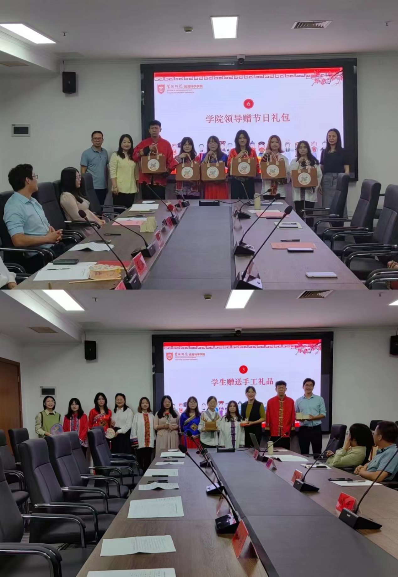仪式上,学院领导为民族学生赠送了精心准备的节日礼包,民族学生向老师赠送了自己的手工作品,现场氛围其乐融融。