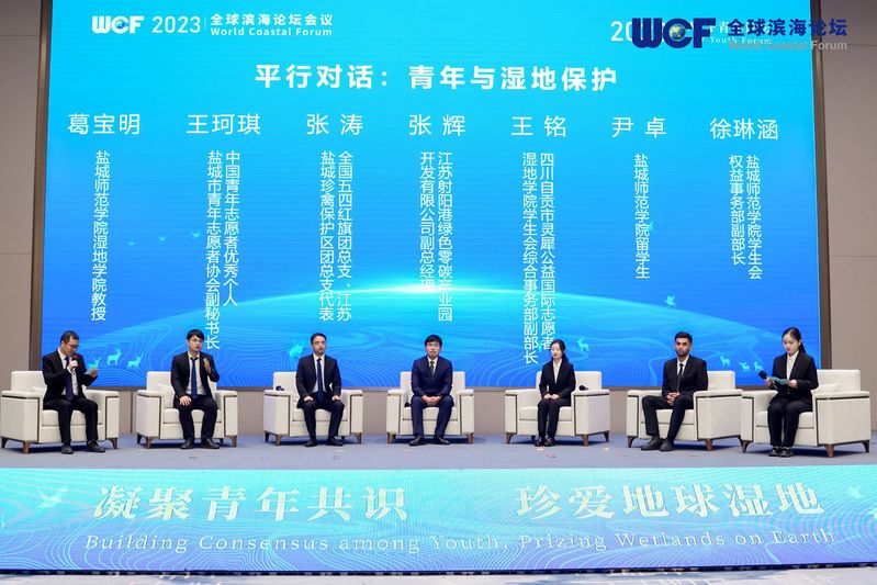 9月24日-27日全球滨海论坛在盐城举行。作为本次论坛近20场分论坛中的第一场论坛——“2023WCF青年论坛”24日下午在大会主会场——江苏盐城国际会议中心举行。该论坛由盐城师范学院联合共青团盐城市委员会、江苏黄海金融控股集团有限公司主办,我校湿地学院承办,联合国教科文组织东亚多部门地区办事处提供指导支持。青年论坛以“凝聚青年共识,珍爱地球湿地”为主题,旨在对外宣介湿地保护的发展理念和经验,展示成果,启发年轻一代在保护地球湿地方面发挥更积极的作用。各领域青年领军者、创新者和专家学者齐聚盐城,共同探讨湿地和生物多样性的未来发展方向、最新科技成果与国际成功案例。