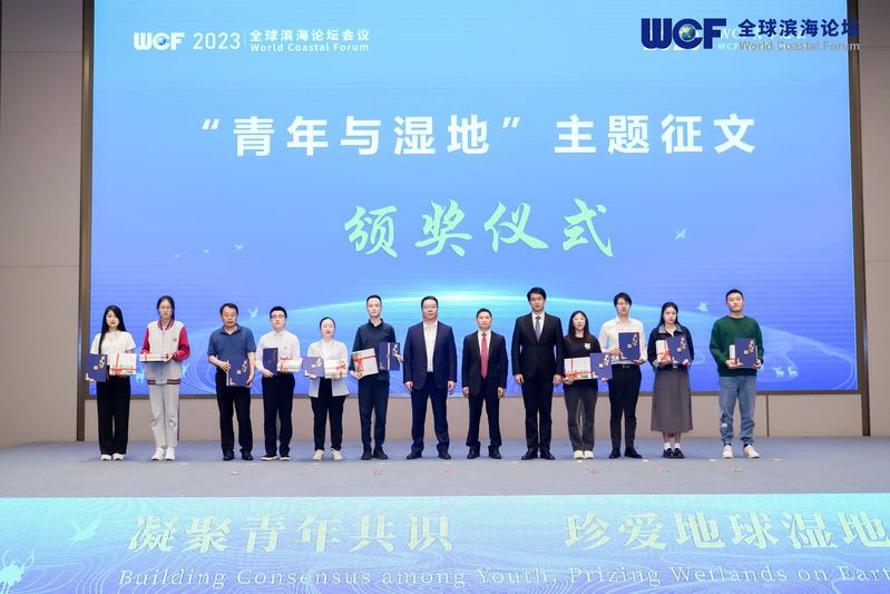 为办好“2023WCF青年论坛”我校联合其他合作单位还在全球开展了主题为“青年与湿地”的征文活动,共收到95篇征文,评选出一等奖10名,二等奖20名,三等奖30名,优秀奖30名。论坛期间,学校校长张宏如等为主题征文获奖代表颁奖。