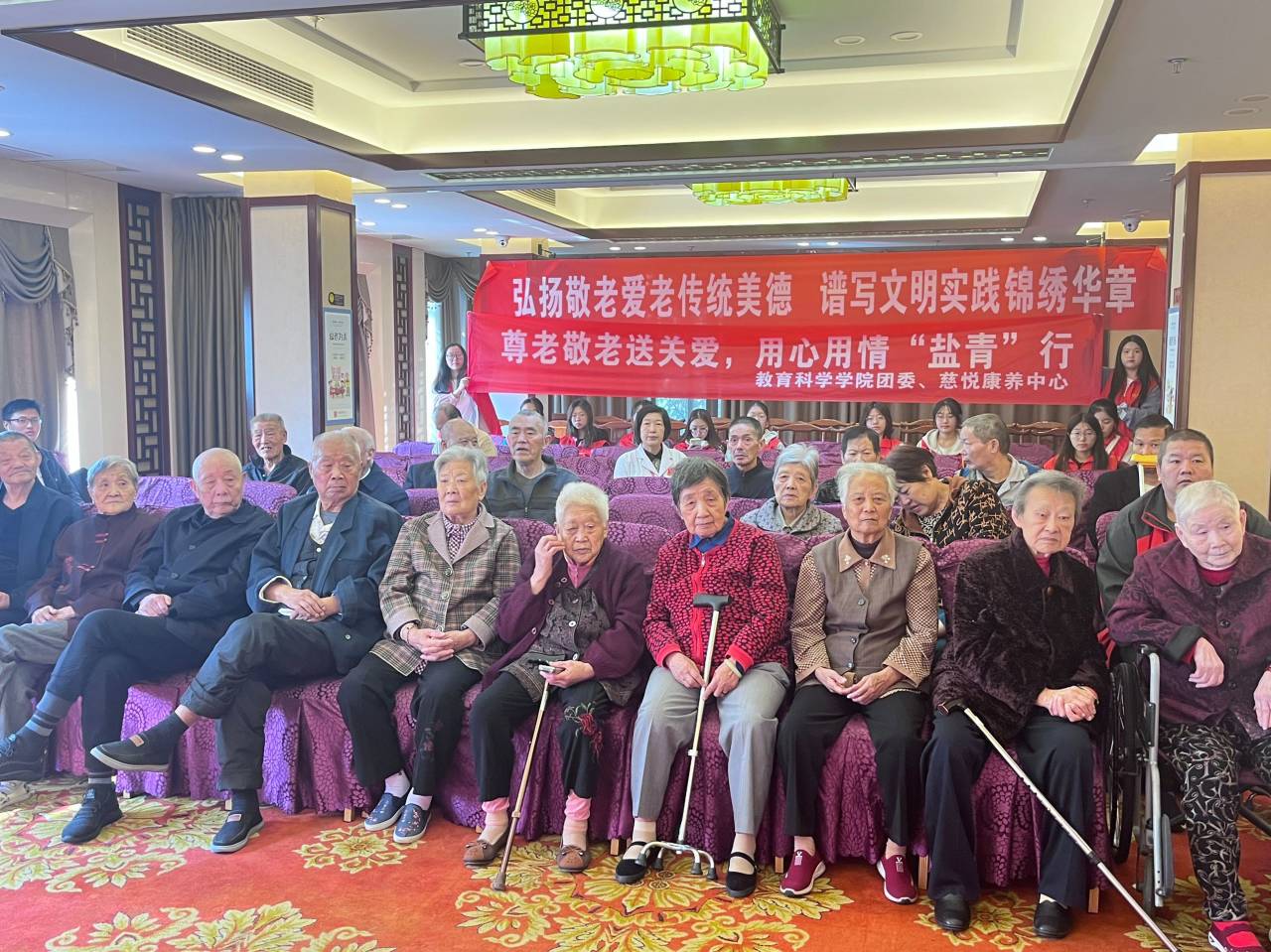 为深入贯彻落实党的二十大精神,按照实施积极应对人口老龄化国家战略有关部署要求,营造良好的爱老助老社会氛围,教育科学学院以“敬老月”为契机精心组织了以“尊老敬老送关爱,用心用情‘盐青’行”为主题的系列活动,在全院上下营造感恩、致敬、关爱老人的浓厚氛围。