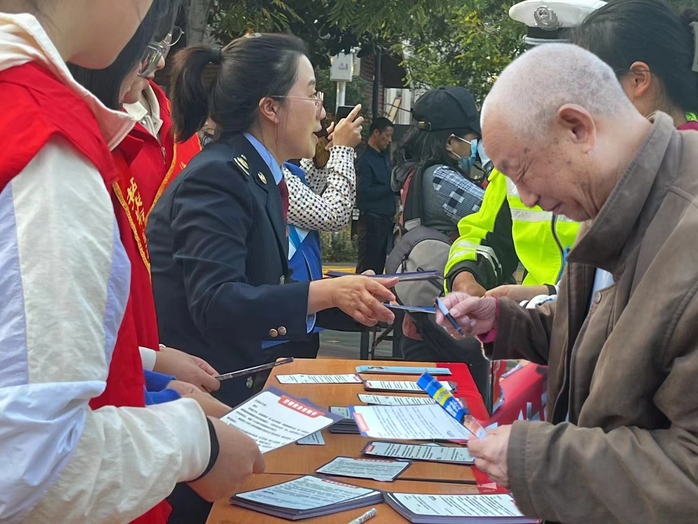 防范养老诈骗,幸福安度晚年。为提高老年人的防诈骗意识,文学院志愿者通过现场发放防诈骗宣传资料、摆放板报宣传展板、讲解典型案例等形式向老年人宣传防诈骗知识,提醒老年人加强防范诈骗意识。志愿者们亲切地讲解,俏皮地“角色扮演”,引发了老年人的共鸣,赢得了他们夸赞的“大拇指”。