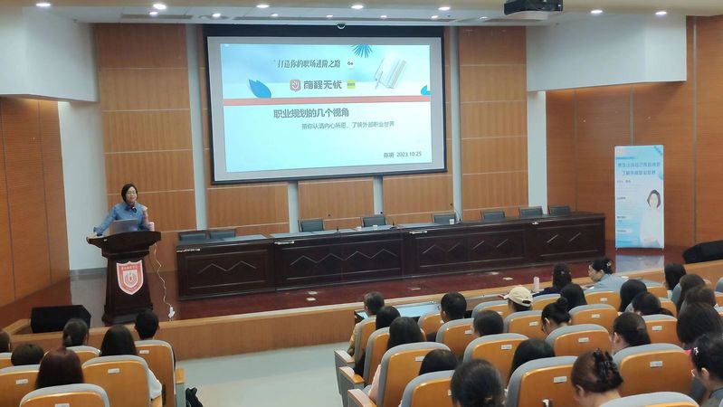 10月25日下午,我校与市人社局、前程无忧招聘网联合开展职业生涯规划辅导活动。前程无忧招聘网资深职场导师陈玥作题为“职业规划的几个视角——带你认清自己内心所愿,了解外部职业世界”的专题讲座。陈老师从一线招聘平台面试官的角度,为同学们普及职业规划的理论知识,分析招聘单位选才面试的要点,帮助同学了解外部职业世界,明确就业方向,做好职业规划。现场还开展了简历设计指导、面试辅导,她鼓励同学们提早做好职业规划,学在当下,赢在未来。