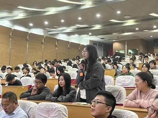 朱晶熙以《大数据时代下智慧物流的发展》为题,围绕快递企业的发展、中通科技的发展历程,解析了大数据、实时计算、仿真、人工智能、机器视觉等前沿技术在物流行业智能路由、动态可视化管理、智能客服机器人、无人配送等场景应用。朱晶熙还与新生们分享了大学期间的学习、生活和专业实践,以及在快递企业技术创新的奋斗历程,鼓励同学们珍惜大学学习机会,脚踏实地、勤学苦练,不断提升专业技能和本领。互动环节,同学们积极提问,朱晶熙热情答疑解惑,现场掌声不断、氛围热烈。