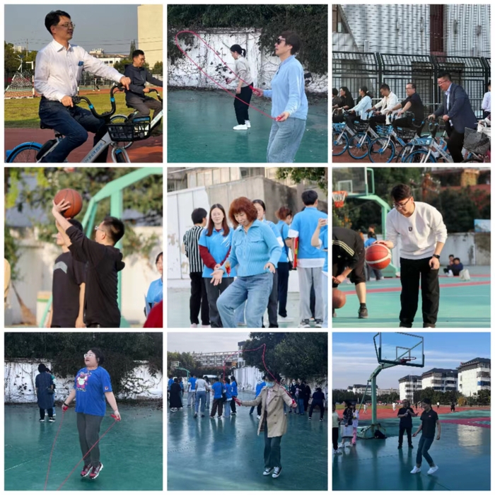 本次趣味运动会共设趣味跳绳、踢毽子、自行车慢骑以及定点投篮4个项目,每个项目设两名裁判员。全体教职工热情高涨、竞相参与,体现了学院教师踔厉奋发、奋力向前的精神面貌。