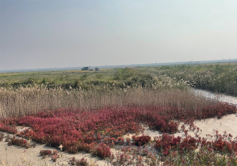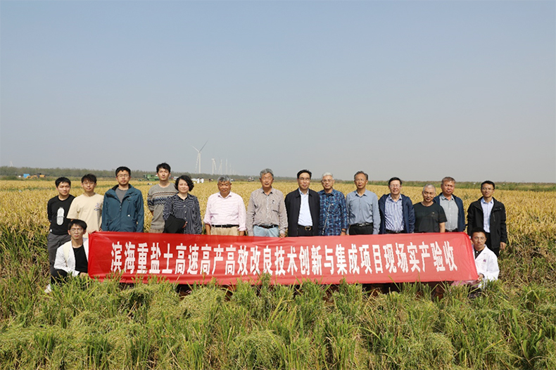 深秋的东台沿海滩涂,金灿灿的水稻和红彤彤的盐地碱蓬将大地点缀的色彩斑斓。近日,在江苏沿海开发(东台)公司条北现代农业示范基地条北二垦区,两台大型联合收割机正在对试验田种植的耐盐碱水稻品种进行收割。这是由我校湿地学院、江苏滩涂生物与农业协同创新中心盐碱地改良团队攻关的“滨海重盐土高速高产高效改良技术创新与集成试验示范项目“实产验收现场。江苏省农业科学研究院陈留根研究员担任验收组组长。