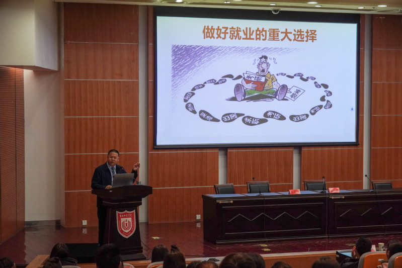 李震东教授围绕职业规划和就业指导,全面系统地阐释了职业生涯规划理论、路径选择以及实施策略等内容,并结合和我校人才培养目标和当前就业形势,用大量生动案例,阐释做好生涯规划的重要意义,引导同学们进行自我剖析,明确人生方向,科学制定目标。同时,他对首届全国大学生职业规划大赛进行了详细解读,鼓励同学们积极参赛,以赛促学,坚定信念,在实践中磨砺和提升,追求进步、追求卓越,实现美好人生。