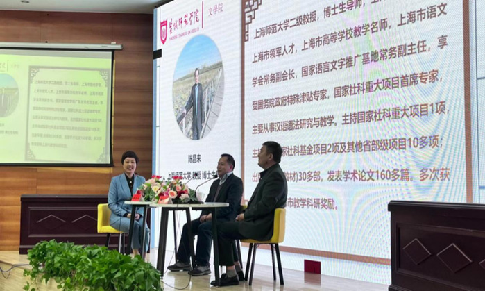 11月10日下午,文学院在通榆校区国培会议室举行“语言学学习与语言研究”专家访谈会。上海师范大学二级教授、博士生导师、国家社科基金重大项目首席专家陈昌来和江苏第二师范学院教授、博士生导师潘文受邀出席访谈。文学院院长李尧主持访谈。