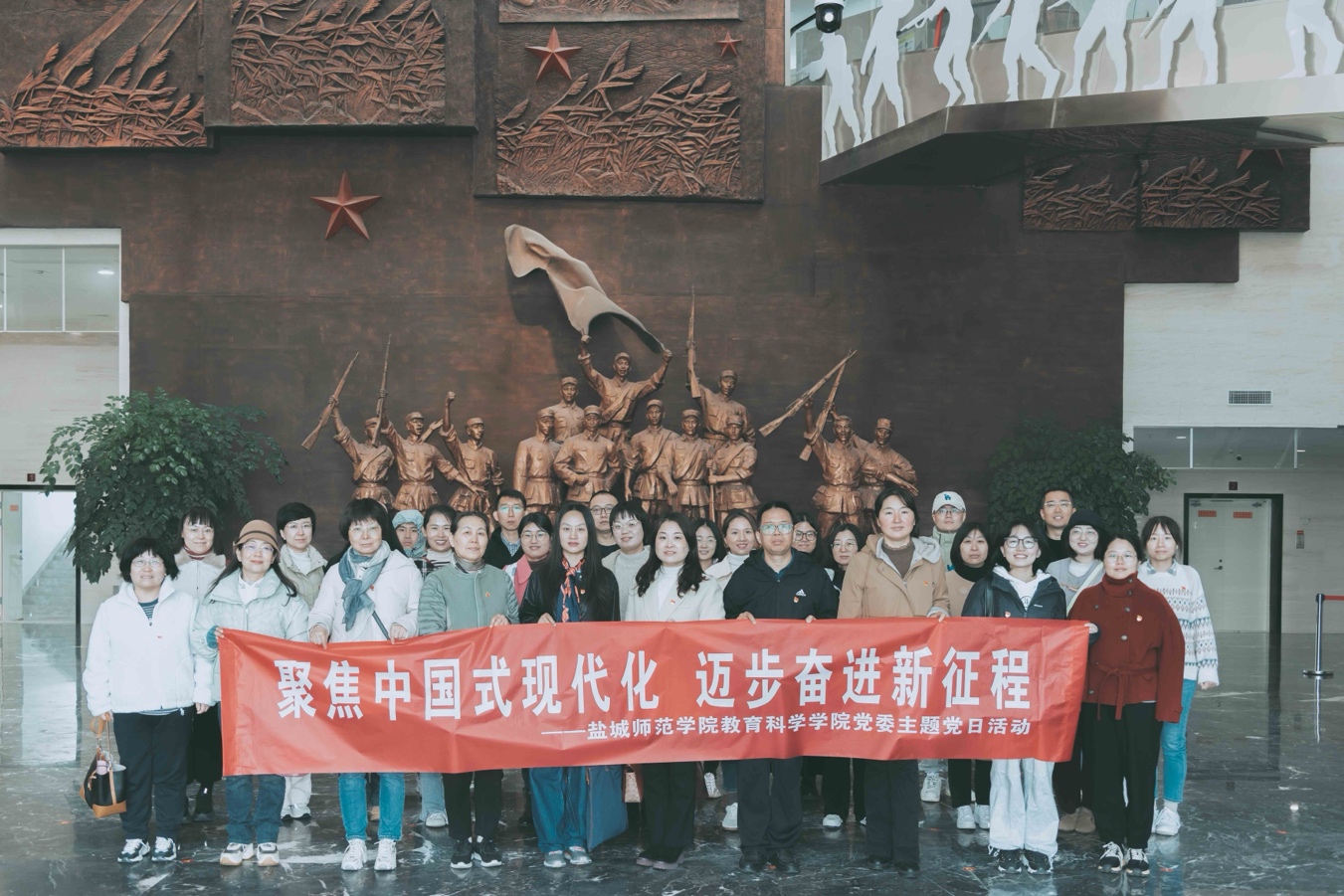 为进一步贯彻习近平新时代中国特色社会主义思想,深入学习中国式现代化的鲜明特色和丰富内涵,11月12日,教育科学学院党委赴盐城大丰开展“聚焦中国式现代化 迈步奋进新征程”主题党日活动。