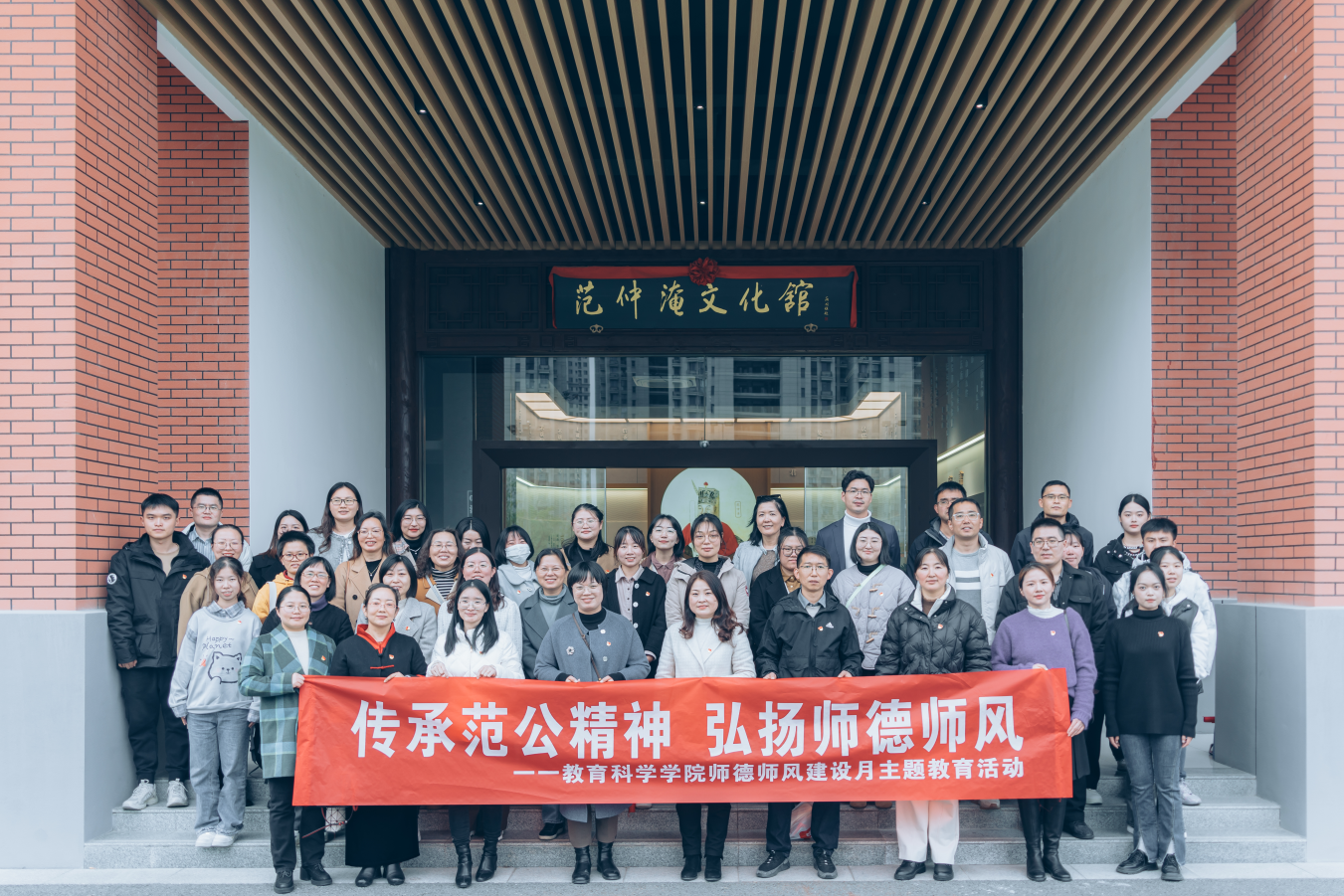 为进一步弘扬学院师生爱党爱国、立德树人、自信自强的精神风貌,强化师德师风建设,根据学校相关精神,1123日,教育科学学院组织全体教师和学生党员赴希文小学范仲淹文化馆开展以“传承范公精神 弘扬师德师风”为主题的师德师风教育活动。