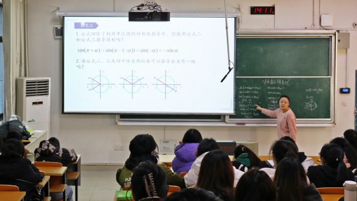 朱丽丽老师以“三角函数的诱导公式”为题通过情景式讲解、逻辑式分析、开放式问答,循序渐进地为同学们展现了教学流程,完整呈现了“以学生为中心、教师为主导,重视情感因素,充分发挥学生主动性、创造性”的教学原则。
