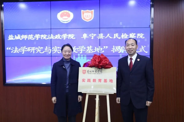 会上,朱广东和何新龙代表双方签订共建协议,冯春芳与何新龙为双方共建的“盐城师范学院法学研究与实践教学基地”揭牌。双方希望以此次活动为起点,在合力培养高层次人才、共同开展检察理论研究、强化人才交流互动等方面开展更深层次合作,进一步提升合作效能,助力学院和检察工作高质量发展。揭牌仪式结束后,朱广东以《学习贯彻习近平法治思想 推进司法工作高质量发展》为题,为阜宁县检察院全体干警授课。