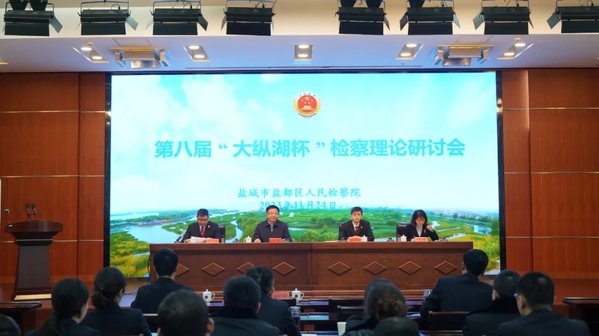 当天下午,冯春芳、朱广东一行赴盐都区检察院参加第八届“大纵湖杯”检察理论研讨会暨检校合作签约仪式活动。盐城市检察院法律政策研究室主任王卫华,盐都区检察院党组书记、检察长张扣华出席活动。