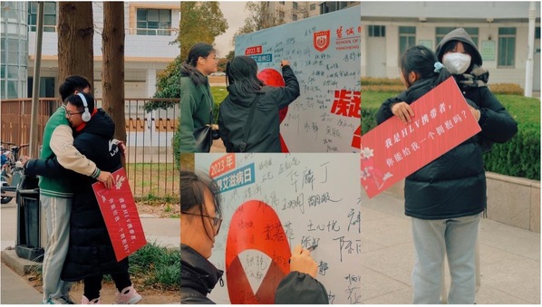 开展同伴教育活动。学院先后开展“防艾青春young”创意作品征集、“预艾予爱,你我同在”大学生防艾知识竞赛、“激昂青春,健康同行”同伴教育主持人培训等活动,同学们踊跃报名、积极参与。11月29日,学院分团委开展“共抗艾滋,与爱同行”健步走活动中,同学们在健步走中践行健康文明的生活方式,以签名的形式,展现共抗艾滋的决心。