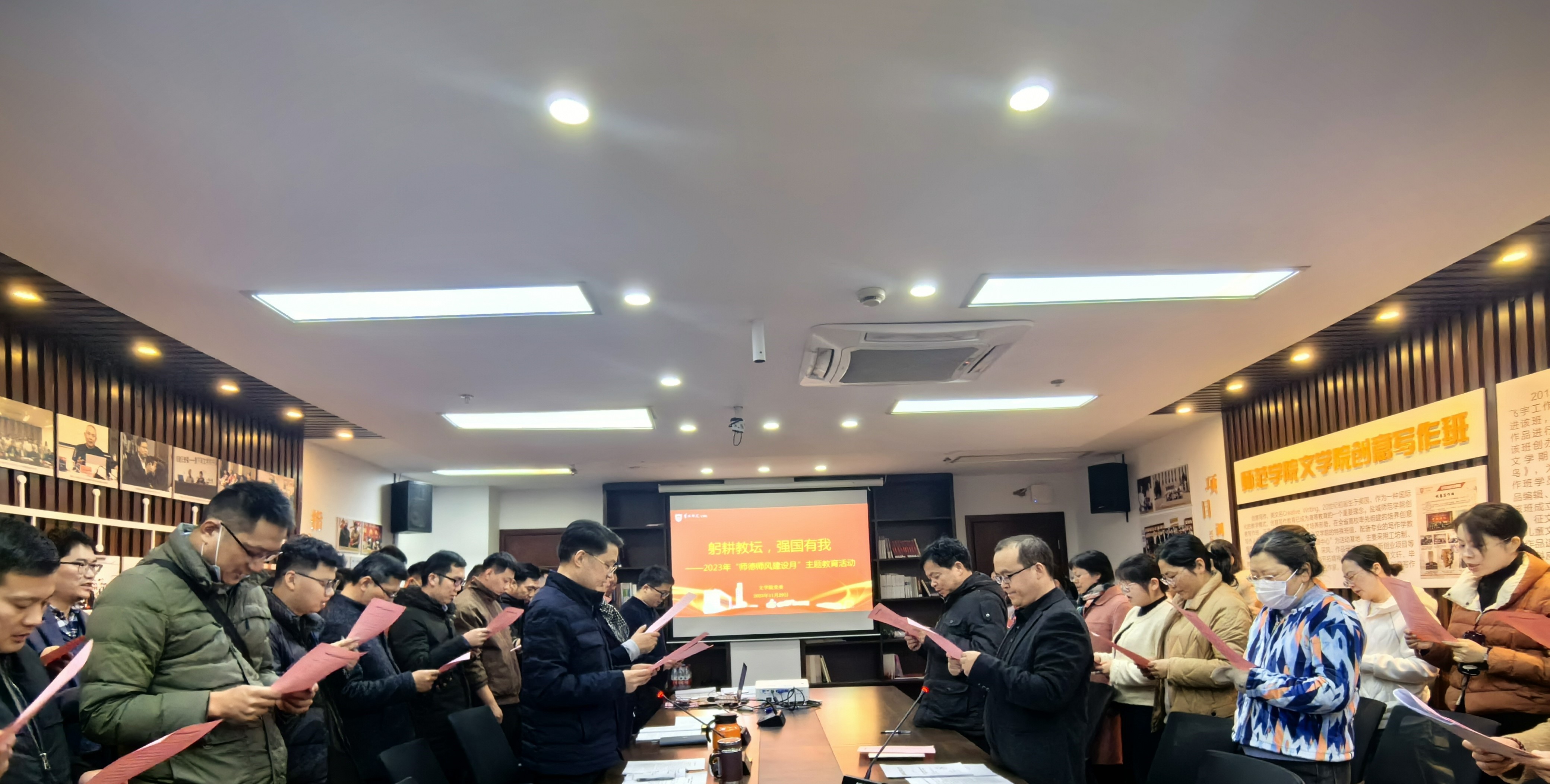 为深入学习贯彻落实党的二十大精神,激发广大教师爱党爱国、立德树人、自信自强的精神风貌,11月29日下午,文学院党委在通榆校区教学主楼B611会议室召开全体教师会议,开展“躬耕教坛 强国有我”师德师风建设月主题教育系列活动。