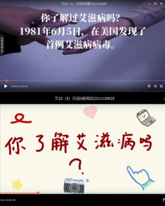为“艾”行动,用爱发声。开展“为艾行动,用爱发声”艾滋病宣传征集活动。同学们通过录制宣传片普及艾滋病防治知识,呼吁社会关爱艾滋病患者。宣传片不仅提高了社会对艾滋病的认识,更传递了同学们对艾滋病患者的尊重和关爱。