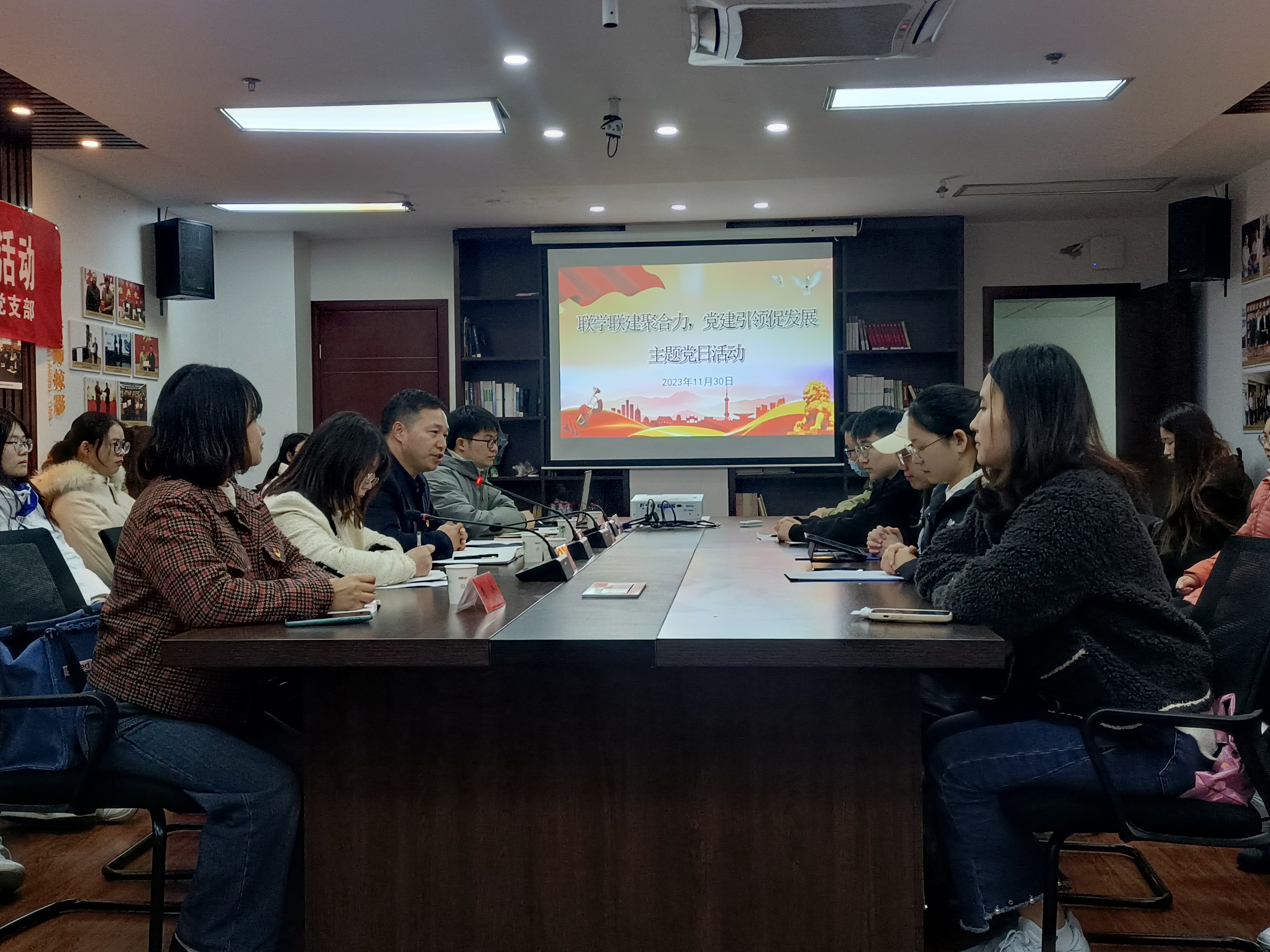 为进一步夯实党建工作基础,增进支部间学习交流,促进支部融合发展,加强组织联建、党员互动、活动互联、资源共享,11月30日下午,文学院学生第一党支部与校研究生党支部联合开展“联学联建聚合力,党建引领促发展”主题党日活动。校学科建设办公室副主任、研究生处副处长、研究生党支部书记赵友龙,文学院副院长冯青青,文学院学工办主任、学生第一党支部书记何静参加活动。