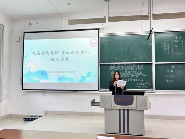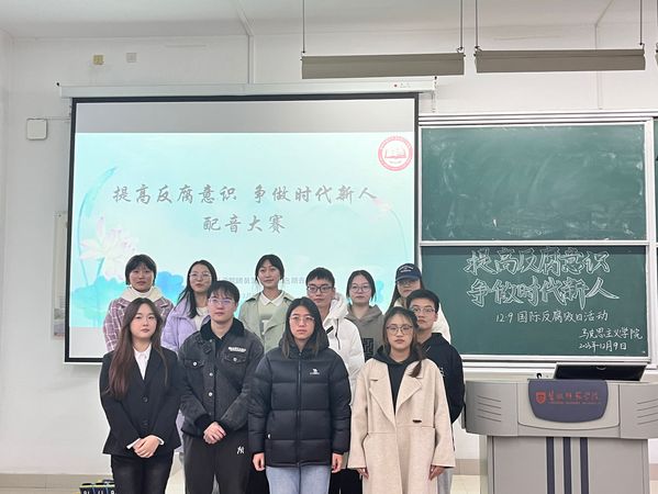 举办一场廉洁影视作品配音活动。12月9日下午,马克思主义学院举办“提高反腐意识,争做时代新人”主题配音活动,选取《人民的名义》《国家干部》《风雨送春归》《人民检察官》等经典廉洁影视作品片段,由学生现场配音。同学们通过声情并茂地表演,惟妙惟肖地再现了影视作品中的人物形象。通过本次配音活动,同学们纷纷表示将旗帜鲜明地反对腐败,不断加强学习,增强斗争本领,积极维护社会公平正义。