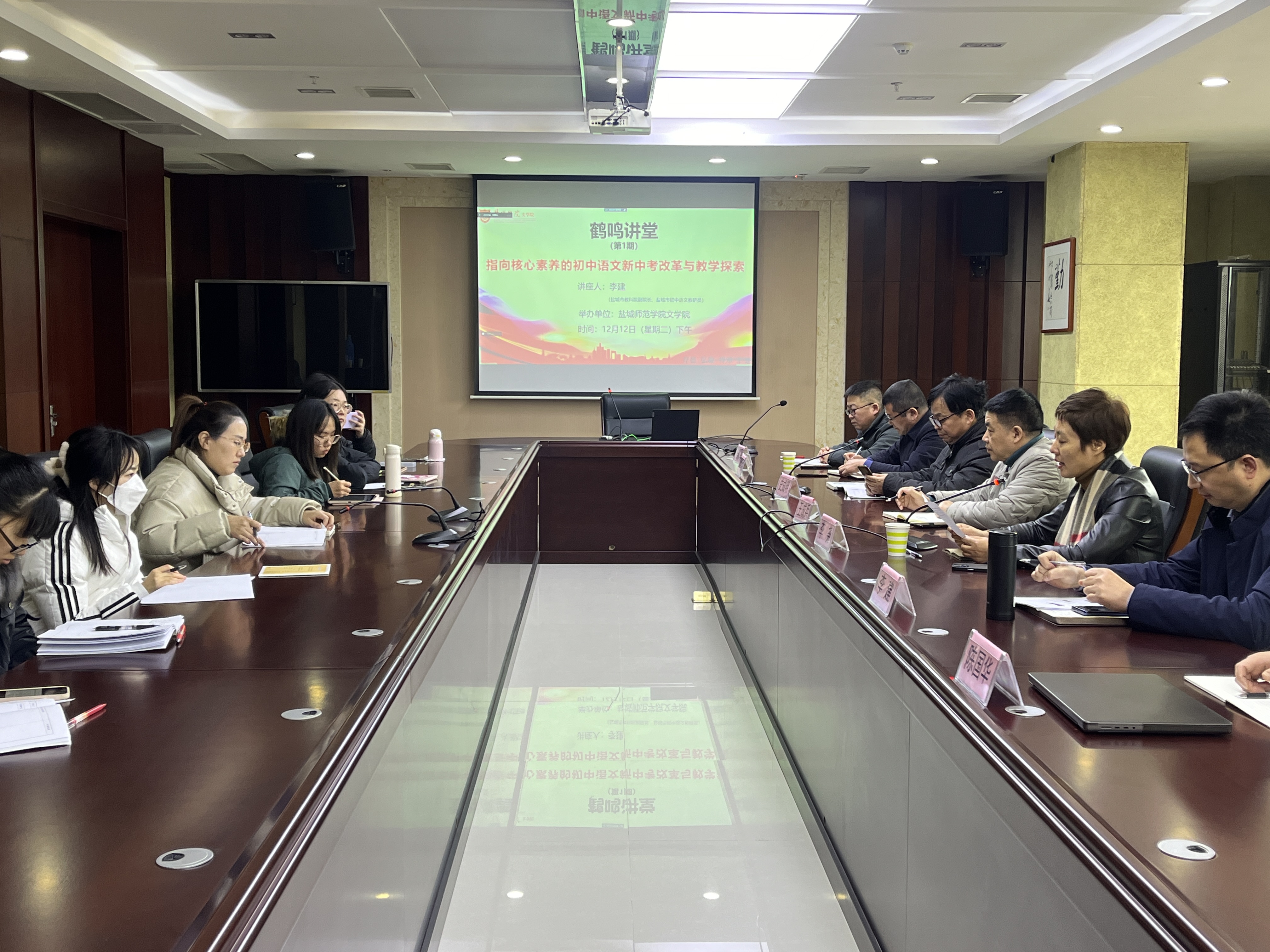 本次“鹤鸣讲堂”由文学院校友、盐城市教科院副院长、盐城市初中语文教研员李建主讲,题目是《指向核心素养的初中语文新中考改革与教学探索》。讲座重点分析了2022版课标背景下语文中考改革的最新方向及其对教学实践的影响,对从事一线语文教学和研究的校友具有重要指导意义,对我校汉语言文学专业师范生培养工作具有参考价值。