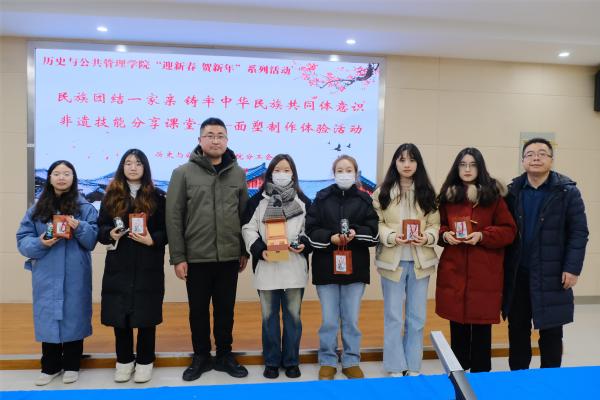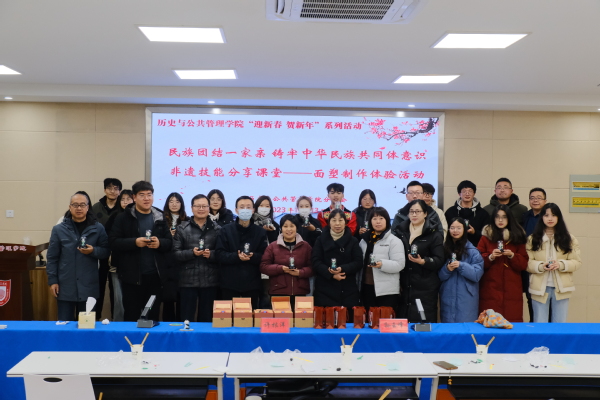 面塑是中国民间传统艺术,是我国非物质文化遗产。为进一步弘扬中华优秀传统文化,增强我院师生对非物质文化遗产的认识与了解,12月13日下午,历史与公共管理学院在五楼实训室举办以“民族团结一家亲 铸牢中华民族共同体意识”为主题的非遗面塑制作体验活动。学院教职工和民族学生代表参加本次活动。