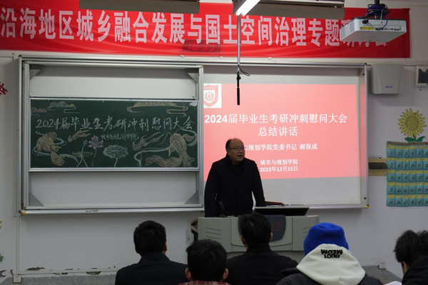 在2024年考研临近之际,为鼓舞考研士气,增强考研学子必胜信心,12月15日下午,城市与规划学院在笃行楼A108举办2024届毕业生考研冲刺慰问活动。学院党委书记郝保成,党委副书记、院长李传武,党委副书记吴恒仲主持本次活动。