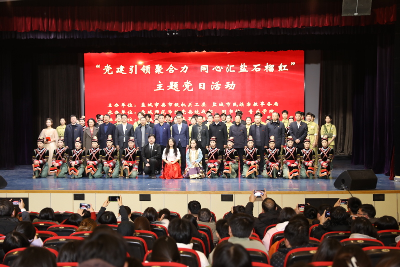为深入学习贯彻习近平总书记在中央政治局第九次集体学习时的重要讲话精神和考察盐城重要指示精神,推动校地民族团结进步创建工作深度融合,12月18日下午,以“党建引领聚合力·同心汇盐石榴红”为主题的市校联建主题活动在我校新长校区举行。市委统战部副部长、市民族宗教局党组书记、局长黄斌,市委市级机关工委副书记陈铁军,中邮建技术有限公司盐城分公司总经理杨树春,学校党委副书记于建江出席活动并讲话。