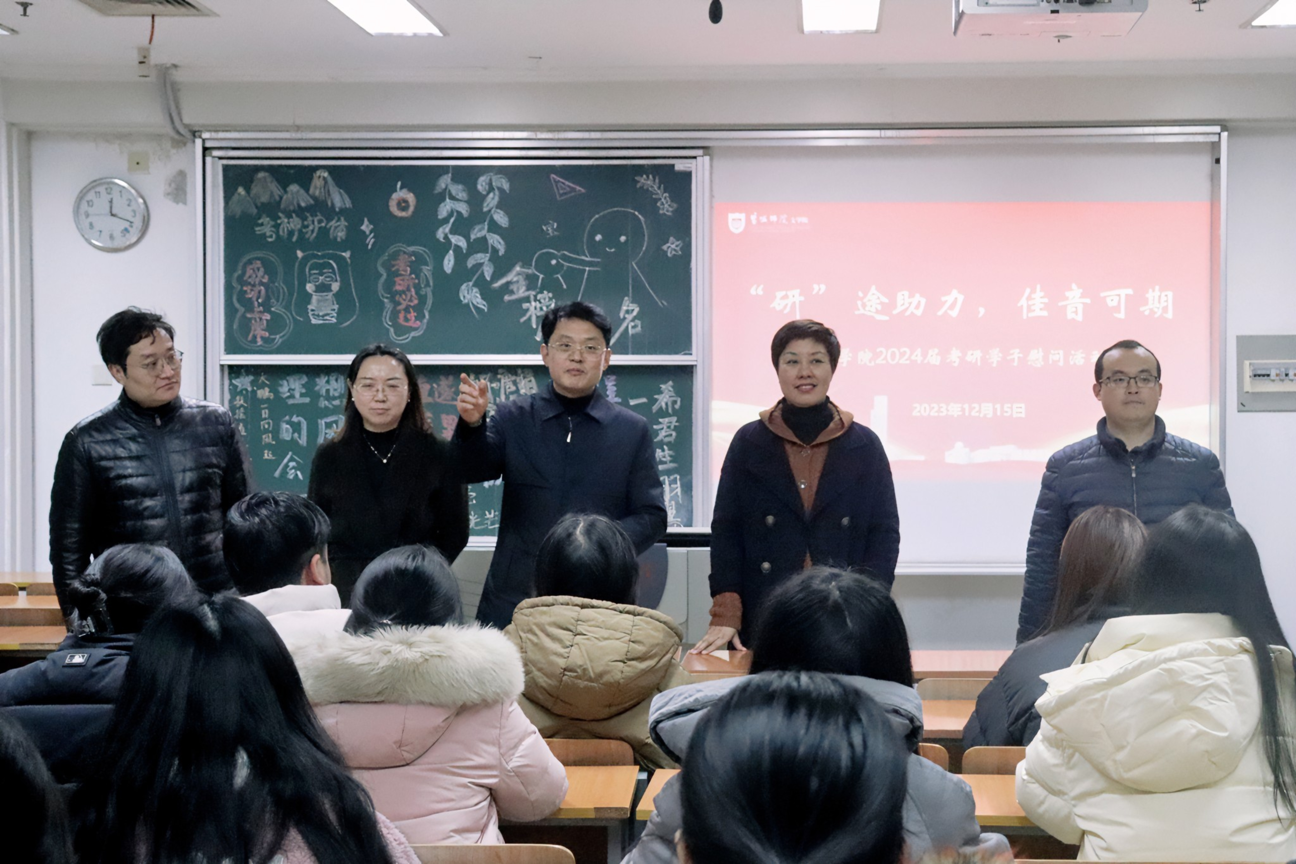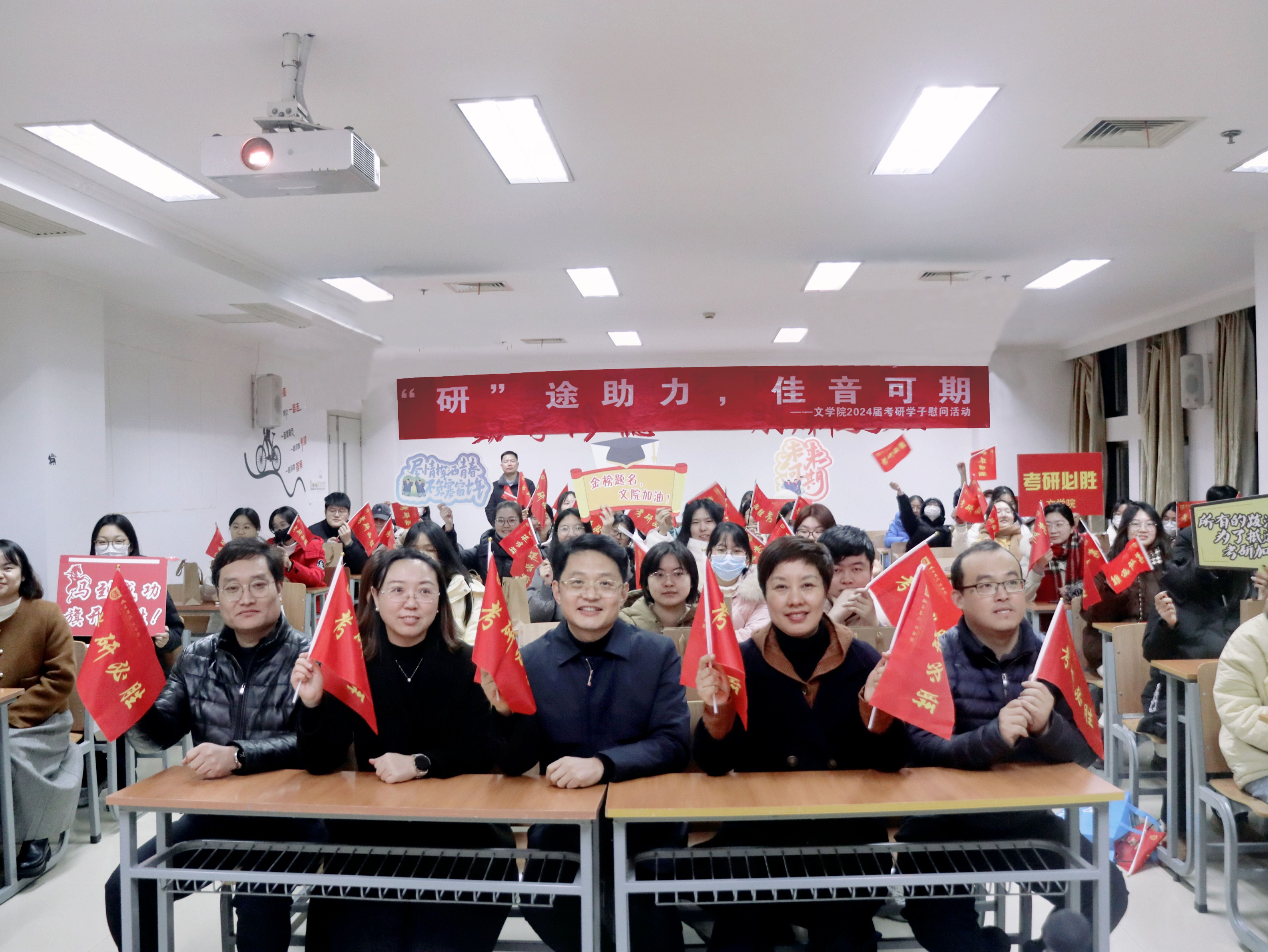 12月15日下午,文学院开展“研途助力,佳音可期”考研慰问活动。学院党政领导班子全体成员与全体辅导员一同深入考研教室亲切看望、慰问即将奔赴考研考场的同学,为他们加油鼓劲,给他们送去温暖、关爱和信心。