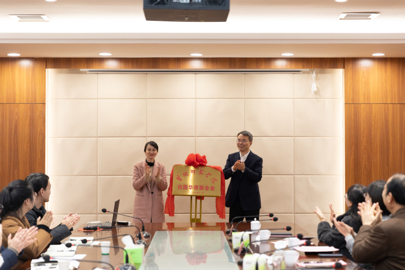 于建江、张慧娟共同为“盐城师范学院归国华侨联合会”揭牌。
