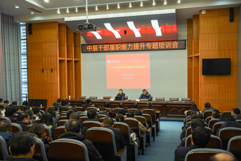 12月21日下午,学校党委副书记、校长张宏如在厚德楼二楼西会议室为全体中层干部作题为《弘扬新时代“铁军精神”,推进学校事业高质量发展》的专题报告,这也是我校2023年新提任处级干部履职能力培训班的第三场报告。学校党委常委、党委组织部部长岳峰主持报告会。