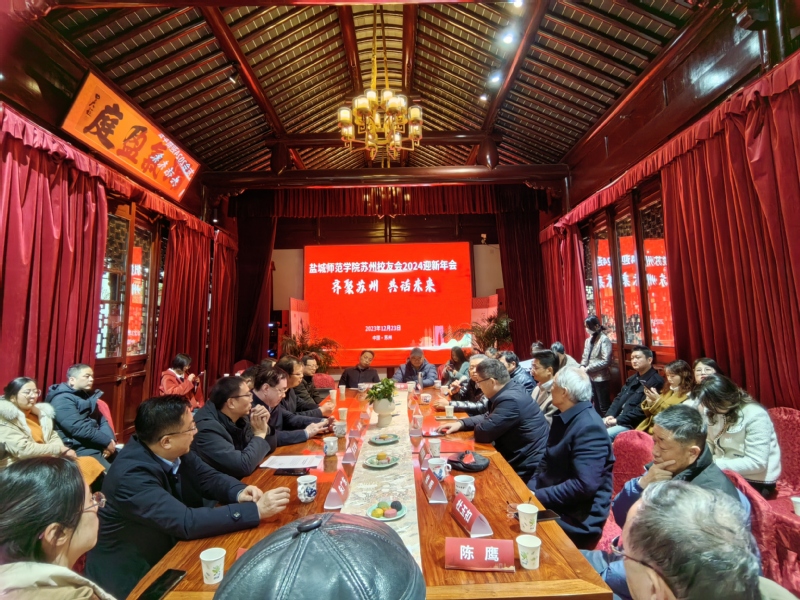 聚力共绘未来景,继往开来盐师情。12月23日下午,我校苏州校友会年会在苏州墨客园隆重举行。学校党委常委、副校长庞波与60余名校友欢聚一堂,叙情谊,话盛景,谋协作,共未来。校友向燕主持活动。