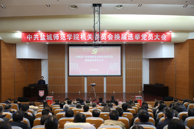 12月25日上午,中共盐城师范学院机关委员会换届选举党员大会在新长校区图书馆学术报告厅举行。在盐党员校领导戴斌荣、张宏如、于建江、张桂华、汤克明、韩雅丽出席会议。