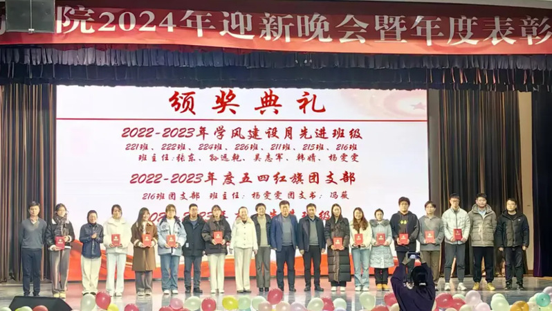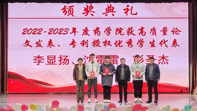 晚会现场,与会领导为2023年度药学院获得各类奖项的先进集体和个人颁奖。