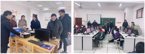 郭晓俐简要介绍学院的专业设置、师资队伍以及人才培养等情况。调研组张德成主任对附属学校的信息化教学以及技术设施优化使用等提出了意见和建议。双方就信息科技课程教学诊断、智慧教室与创客中心的高效使用、智慧校园管理平台建设优化、师资培训等方面开展深入交流,达成初步合作意向。