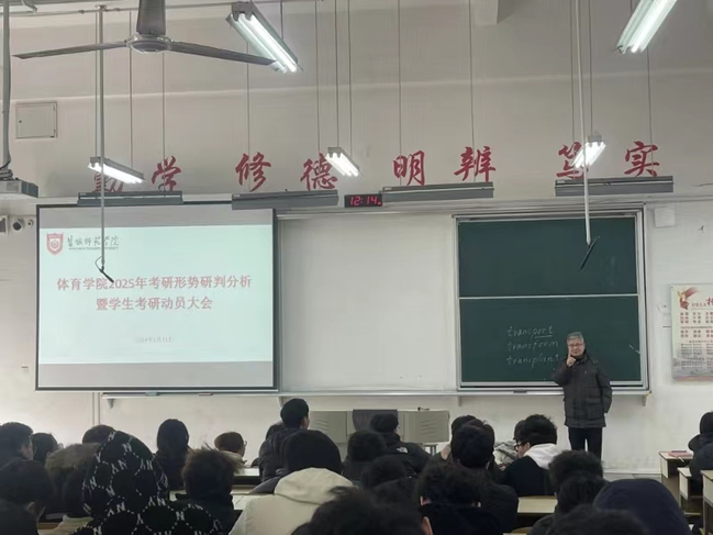 为进一步应对新形势下大学生就业面临的挑战,1月15日上午,体育学院召开学生考研动员大会。体育学院党委书记魏哲峰,党委副书记张生龙,2021级班主任、辅导员以及全体大三学生参会。
