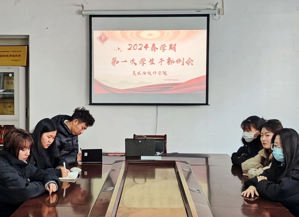 为充分发挥学生干部的桥梁与纽带作用,确保新学期各项学生工作平稳有序开展,3月2日下午,美术与设计学院在219会议室召开2024年春学期第一次学生会干部例会。学院党总支副书记王寅出席会议,辅导员张雨清主持会议。