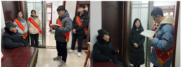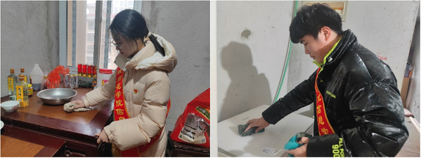 在益丰社区新时代文明实践站,大家深入社区老人家中为老人整理内务、擦拭桌椅、打扫地面等,用绵薄之力带给老人温暖。志愿者还与老人聊天谈心,倾听他们讲述年轻时候的故事以及难忘的经历。老党员丁爷爷表示,今天很高兴与同学们交流沟通,同时也希望同学们好好学习知识、掌握专业本领,担当起历史责任与时代使命,为强国建设、民族复兴贡献力量。