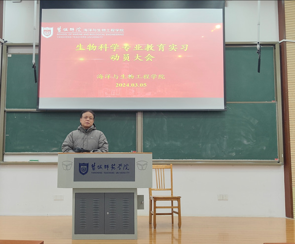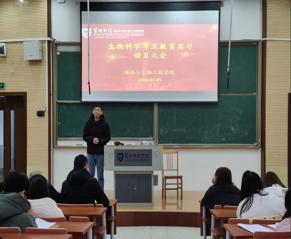为加强师范生对教育实习的认识,保障实习工作的有序开展,3月5日上午,海洋与生物工程学院召开了2021级生物科学专业教育实习动员大会。学院副院长李祥,指导教师代表吴生才、范忠军、卞勋光出席会议,生物科学系副主任夏文龙主持会议,全体实习生参加此次会议。