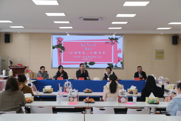 3月8日下午,历史与公共管理学院分工会在五楼实训室举办“心有繁花,一路芳华”庆祝“三八”国际妇女节活动,学院党政领导班子成员、女教职工、女大学生代表参加活动。