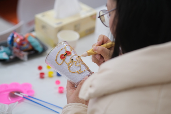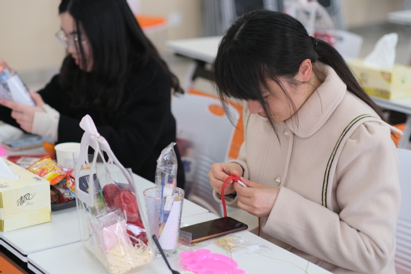 活动开始前,学院为大家准备了玻璃彩绘与平安车挂编织两种手工材料,活动中,经过女教工的精心勾勒、上色,一个个精美的手绘玻璃杯跃入眼帘,一件件创意作品顺利编织完成。活动现场大家相互交流,气氛热烈活泼,不时传来阵阵欢声笑语。