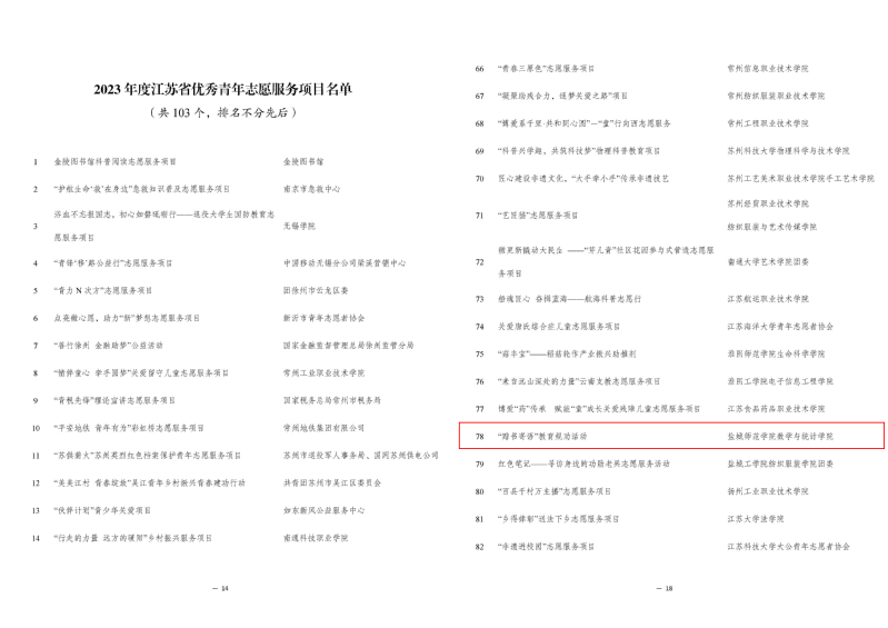 日前,江苏省青年志愿者协会组织开展了2023年度全省青年志愿者行动评选工作。经项目前期推报、资格初审和专家评审,我校数学与统计学院《“赠书寄语”教育规劝活动》荣获2023年度江苏省优秀志愿服务项目。