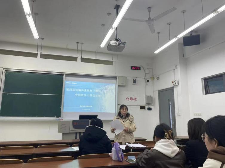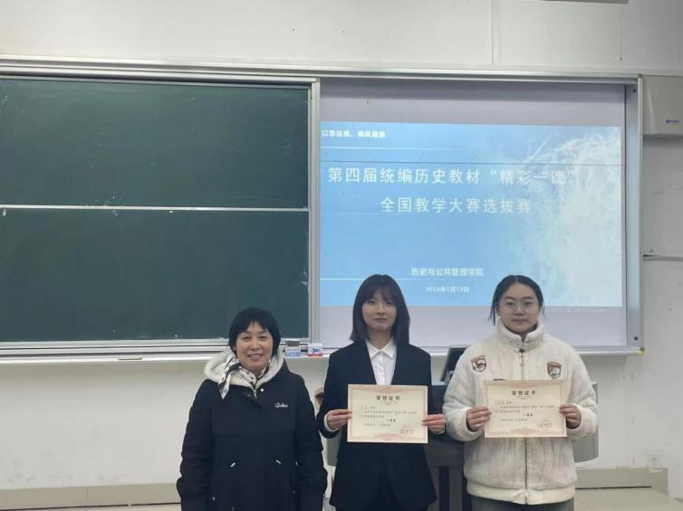 为促进历史学专业师范生教育教学能力的有效提升,展示历史教学风采,积极参加第四届统编历史教材“精彩一课”全国教学大赛,3月12日下午,历史与公共管理学院举办院内选拔赛。学院党委副书记、院长陆玉芹,副院长曾凡云以及刘正萍、蒋华、刘田老师担任评委。