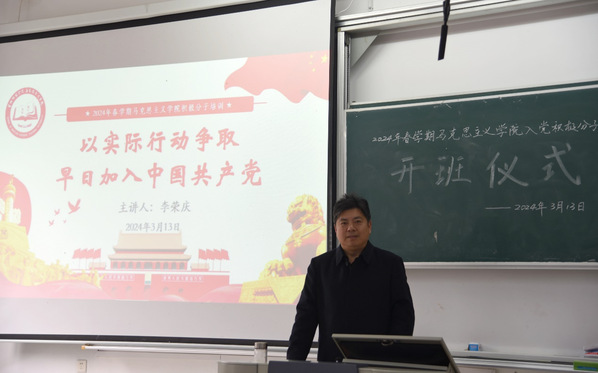 仪式上,李荣庆勉励同学们珍惜培训学习的机会,端正学习态度,严守学习纪律,以饱满热情投入学习之中,做到学有所获、学有所成、学有所用。随后,李荣庆以《以实际行动争取早日加入中国共产党》为题,围绕党的性质、宗旨、目标以及入党的条件与程序等内容,为全体入党积极分子上党课。他要求同学们不仅要在思想上、更要在行动上向党组织靠拢。他要求,高度重视专业知识积累,不断夯实专业基础。坚持树立全心全意服务同学的理念。做到以身作则,发挥先锋模范作用。
