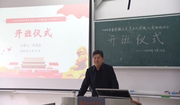 3月13日下午,马克思主义学院在公共教学楼D203举办2024年春学期入党积极分子培训班开班仪式暨第一课党课。马克思主义学院党总支书记李荣庆、辅导员胡润之以及本学期全体入党积极分子参加开班仪式。